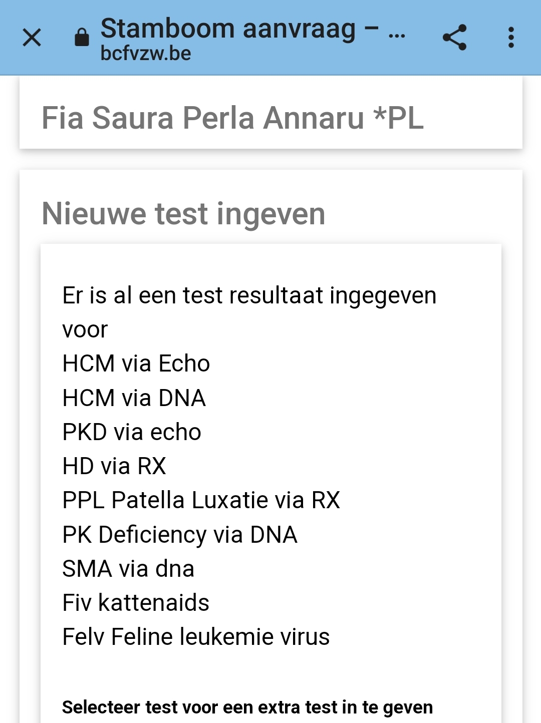 Geteste lijn NN dna/echo/screen (parents also)